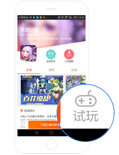 龍境云可以為應用商店提供手游APP下載前試玩服務。 用戶無需下載、安裝,就可以直接體驗APP,覺得滿意之后再進行下載。 這項服務幫助優化傳統應用商店游戲運營體驗,增加應用商店的用戶停留時長, 進而提升下載轉化率。